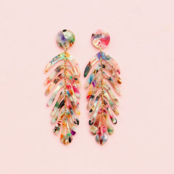 Diese langen, mehrfarbigen Statement Hängeohrringe setzen ein auffälliges Highlight zu deinem Outfit. Das lebendige Farbspiel und das elegante Blattdesign verleihen dir einen individuellen Look, der deine Persönlichkeit gekonnt unterstreicht. Dank des leichten Materials sind diese Ohrhänger das perfekte Accessoire für lange Tage (und Nächte). Die Ohr-Stifte sind aus hautfreundlichem, hypoallergenem Edelstahl.