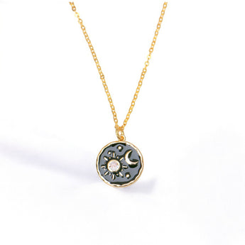 Diese zierliche, vergoldete Halskette ist ein Must Have für alle Liebhaber von Himmelskörpern und kosmischem Schmuck. Der emaillierte, detailreichen Anhänger symbolisiert die Schönheit und Einzigartigkeit des Universums und verleiht deinem Outfit eine besondere Note.