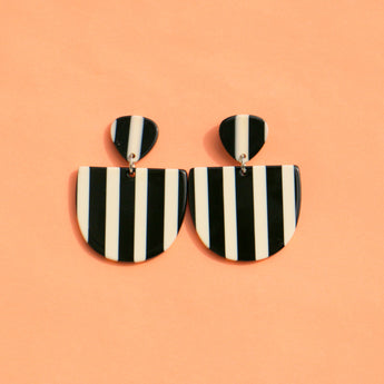 Gestreifte Acetat Ohrringe Schwarz Weiß