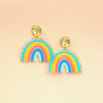 Diese Happy Rainbow Ohrringe bringen jeden Look zum Strahlen! Die fröhlich bunten Ohrringe aus leichtem Acryl verleihen jedem Outfit eine verspielte Note und sorgen garantiert für gute Laune. Ohrschmuck, der Freude und Spaß macht! 🌈 🌈