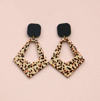 Diese trapezförmigen Ohrringe mit frechem Leo-Print aus leichtem Acetat bringen Schwung in deinen Style! Sie sind perfekt, um deinem Look eine wilde und verspielte Note zu verleihen – ideal für alle, die auffallen und Spaß an ihrem Outfit haben wollen. Einfach anziehen und sofort zum Star jeder Party werden!