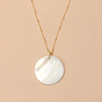 Diese elegante Halskette mit einem Scheiben-anhänger aus Perlmutt ist modern und zeitlos zugleich. Trage sie allein oder zusammen mit anderen Ketten für den angesagten Layering-Look. Der wunderschöne Schimmer des Materials verleiht jedem Exemplar eine einzigartige Optik. Ein hübscher Akzent zu minimalistischen Outfits.
