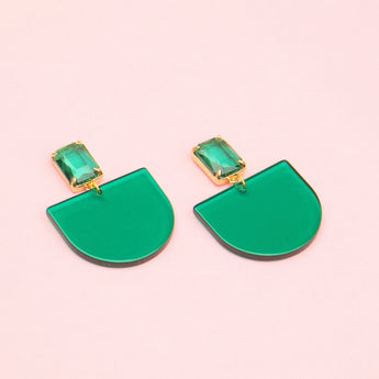 Diese smaragdgrünen Statement Ohrringe werden dein neuer funkelnder Begleiter. Die Ohrringe bestehen aus Acryl und haben vergoldete Ohrstecker mit geschliffenen Glassteinen. Ein echter Eye-Catcher für den du viele Komplimente erhalten wirst!