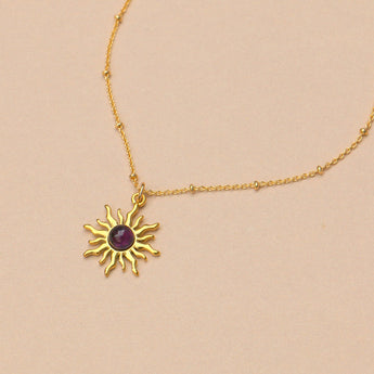 Verborgen in dieser eleganten Halskette liegt eine alte Magie – das mystische Zusammenspiel zwischen der ewigen Sonne und der geheimen Kraft des Natursteins. Perfekt als Geschenk oder als persönliches Accessoire, das deine Individualität unterstreicht. Der kleine Sonnen-Anhänger ist ein hübscher Talisman, der die Energie und Kraft der Sonne symbolisiert und als Zeichen für Lebensfreude und Energie steht.
