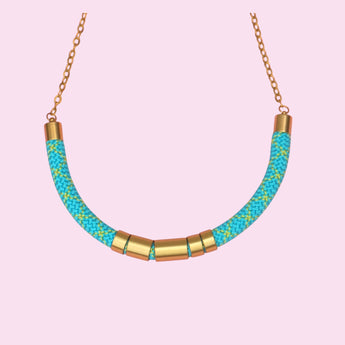 Feel the funky vibes! Diese extravagante Statement Kette ist wie für dich gemacht! Sie ist handgefertigt aus hochwertigem Polyamid-Seil und Messingelementen. Ein einzigartiges Accessoire, das garantiert alle Blicke auf sich zieht.